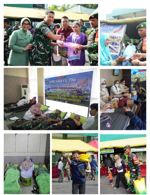 Samarinda, Dalam rangka memperingati Hari Ulang Tahun (HUT) Tentara Nasional Indonesia (TNI) ke-80, Kodim 0901/Samarinda menggelar Gerakan Pangan Murah , bazar UMKM.dan kegiatan sosial, seperti pembagian sembako Gratis, pengobatan gratis ,Donor darah.