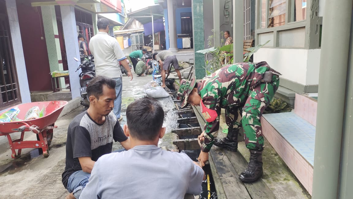 "Bersih Bersih Selokan" Babinsa Bersama Warga Gotong Royong